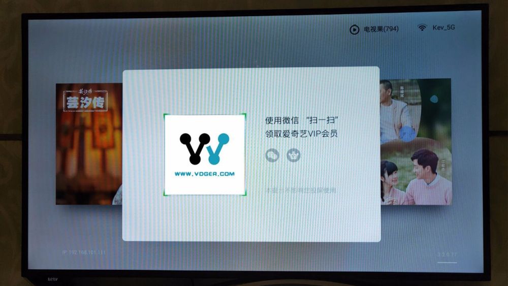 值得一提的是,电视果3随机为用户赠送了一个月的爱奇艺黄金VIP会员,在首次连接成功之后便会弹窗提示激活,使用微信扫码后支付1分钱便可轻松激活!